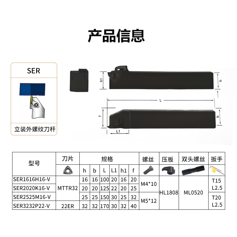 Vertical mounted external thread shank SER2020K16-V centricity locomotive shank is equipped with MTTR32 CNC thread insert