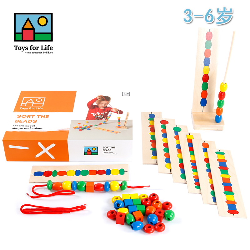 Toysfor Life Logic Strings Beads Game Solid Shape Cognition Wearing Pearl Color Classification Thinking Training Toys