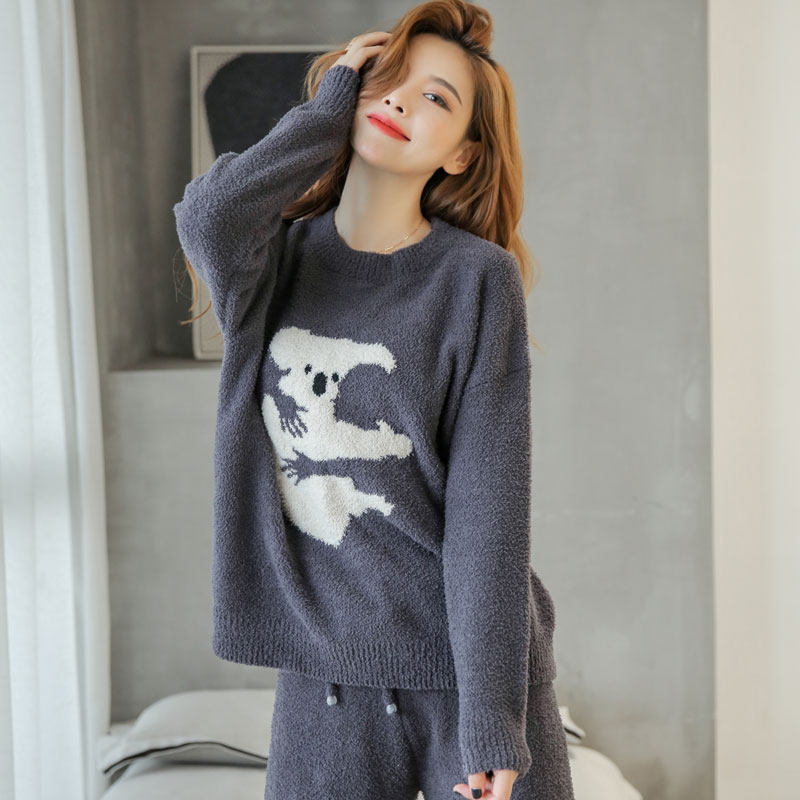 2022 new pajamas women's autumn and winter soft and thick warm and cute coral fleece can be worn outside the home clothes suit