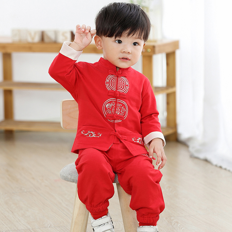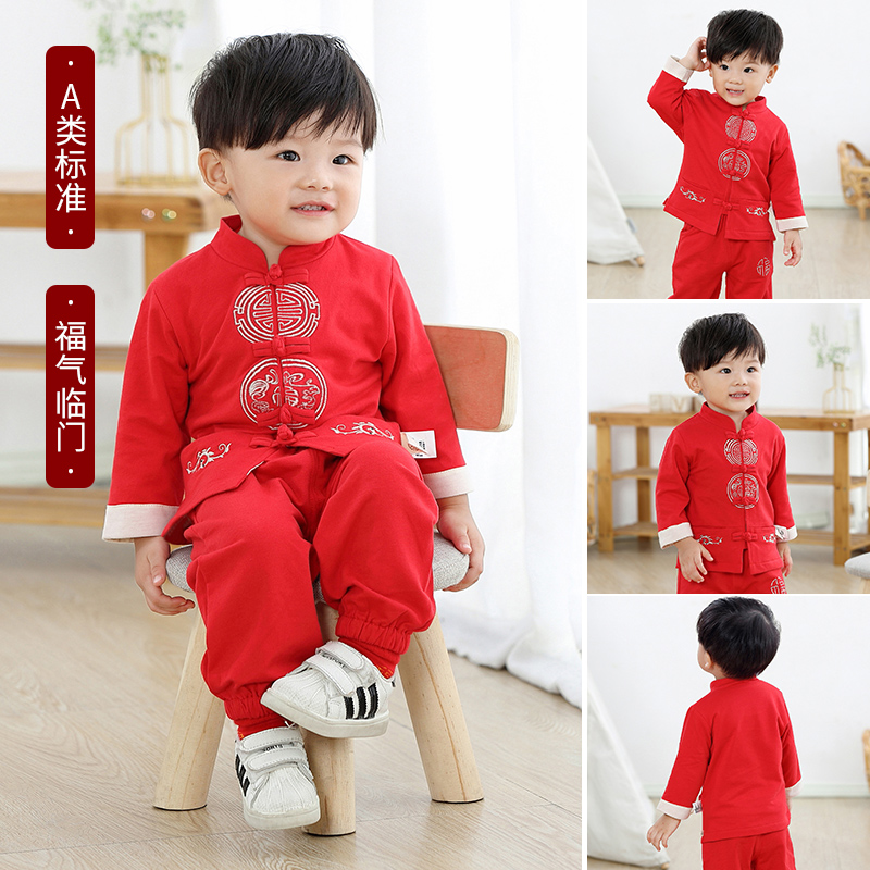 Children's Tang costume Chinese style Hanfu boy Spring and Autumn costume baby one year old grab week dress Chinese 100 days feast clothes