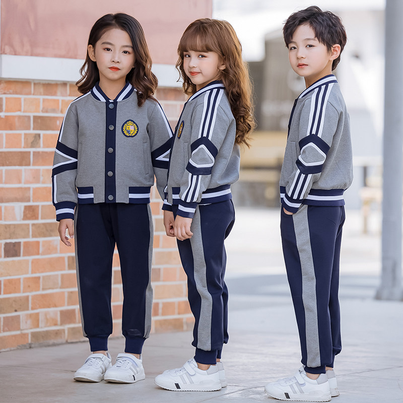 Kindergarten uniform spring and autumn clothing British style children's class uniform primary and secondary school uniform three-piece gray sports suit