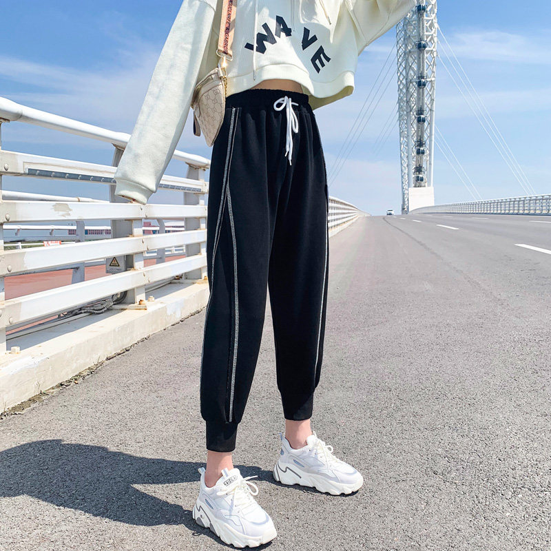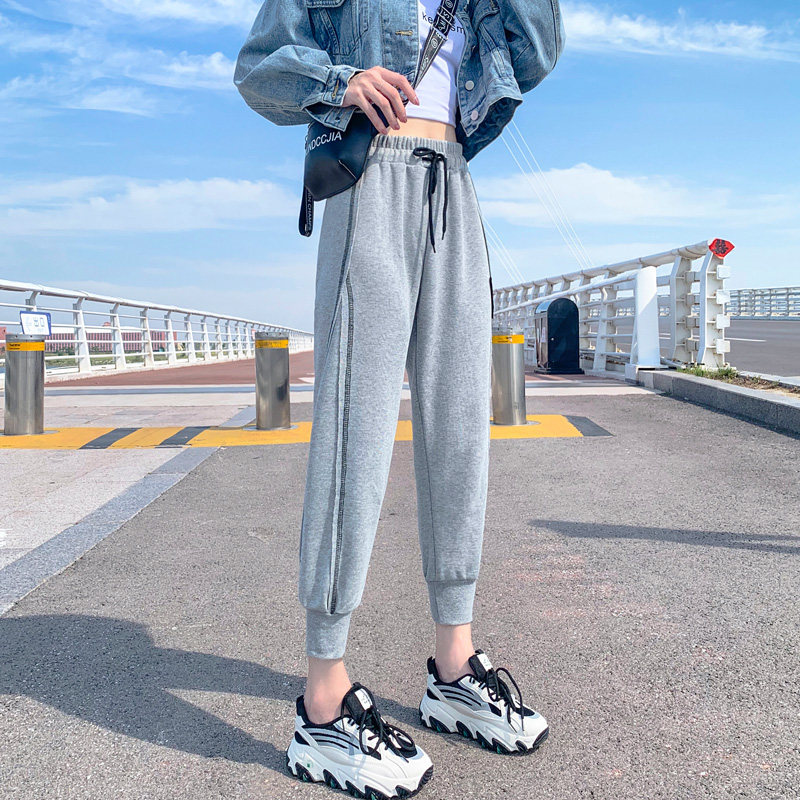 Beam Footed Sports Pants Woman Loose Autumn Winter Plus Suede Thickened Grey Ins Tide 90% Small Casual Kharenwear Pants