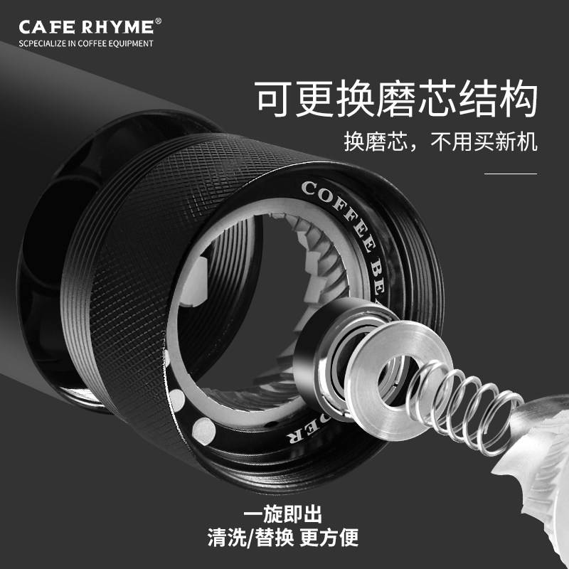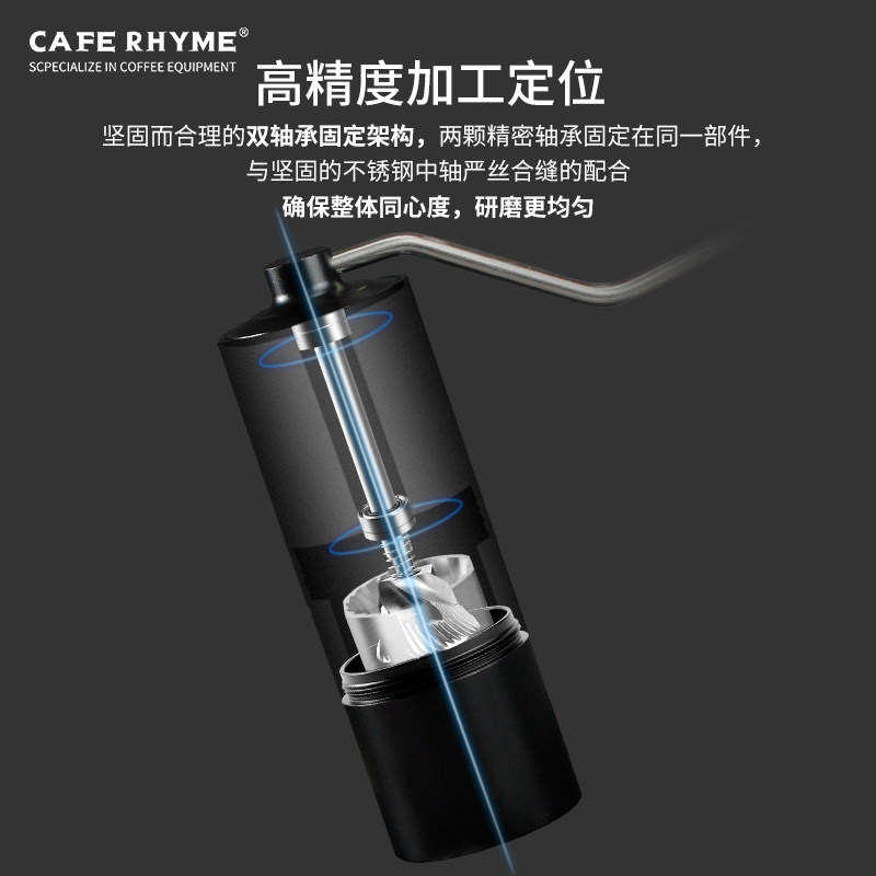 CAFE RHYME hand cranked coffee grinder, portable household hand brewed Italian style dual axis manual coffee machine for coffee bean grinding