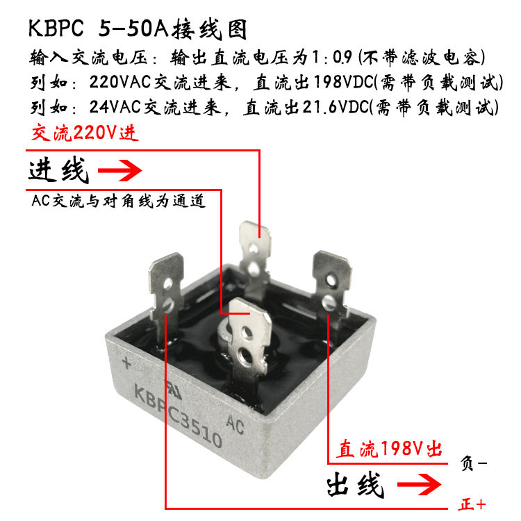 Single-phase rectifier bridge KBPC3510 square bridge rectifier bridge stack 35A charger foot current brand new