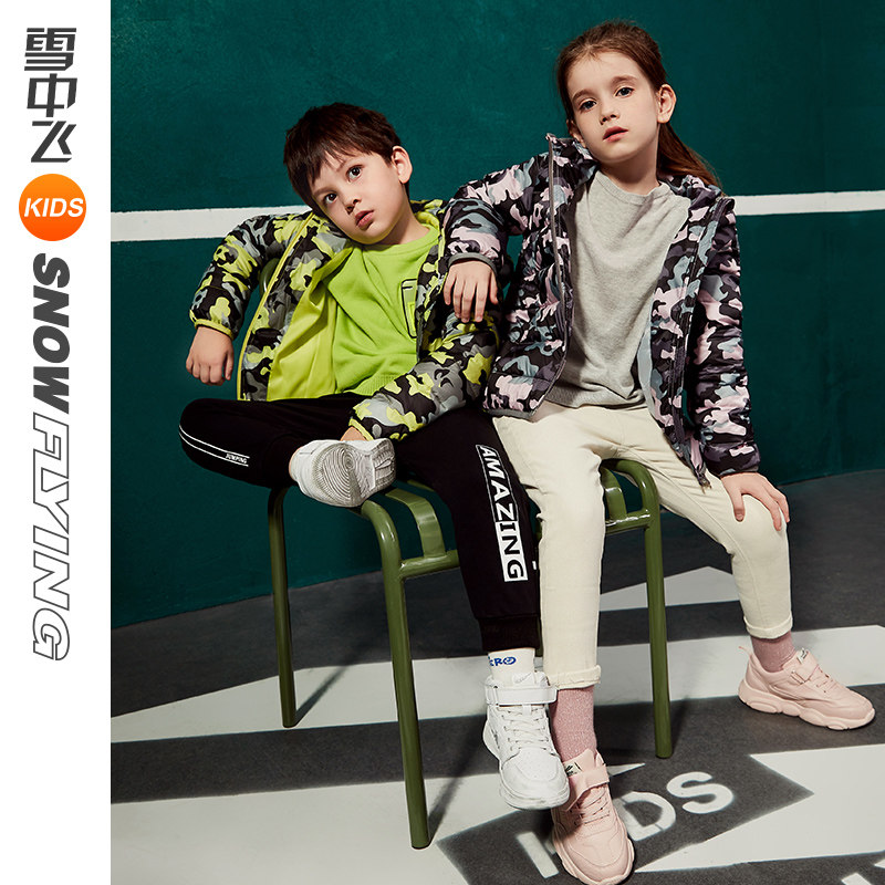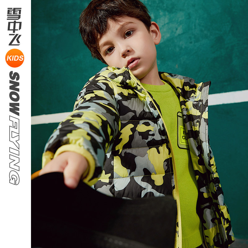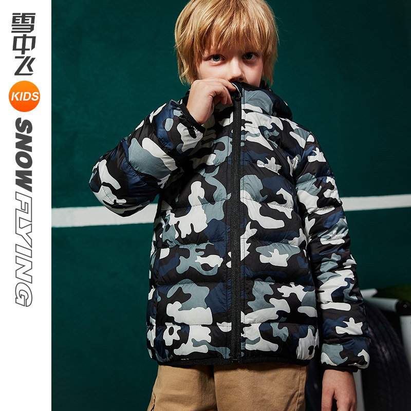 Snowy flying kids children clothing children's down clothes boy light and thin money CUHK couriers hat camouflate shorts down to winter