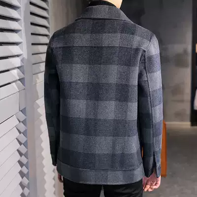 Men's double-sided cashmere coat short autumn and winter woolen jacket Korean version of wool Nizi Plaid youth trench coat