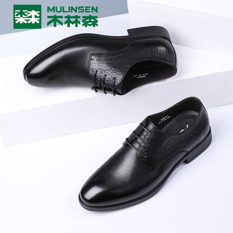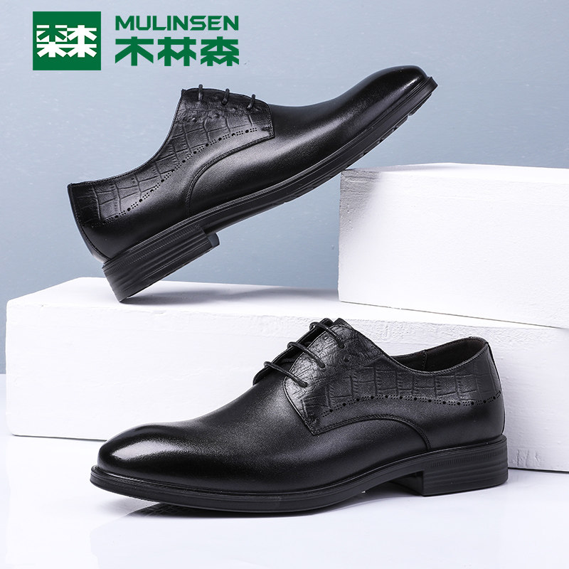 Wood Linson Men's Shoes Business Positive Dress Leather Shoes Summer Genuine Leather Breathable pointed Inn men Derby Shoes Wedding Shoes 100 hitch