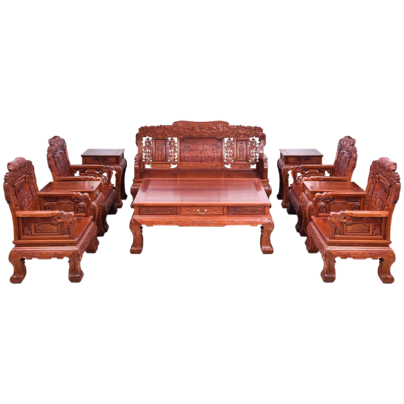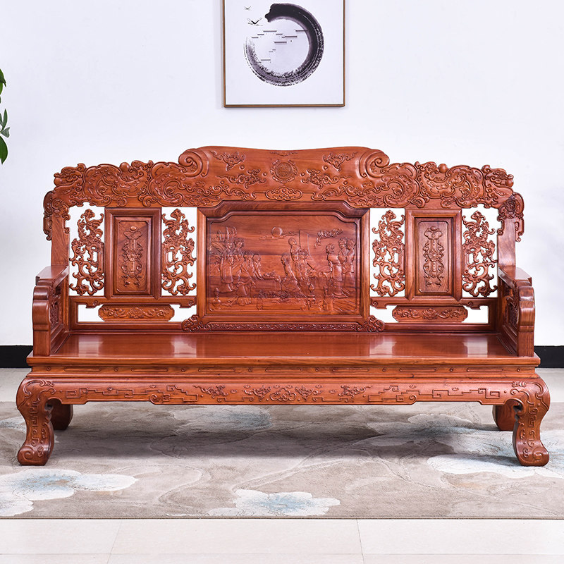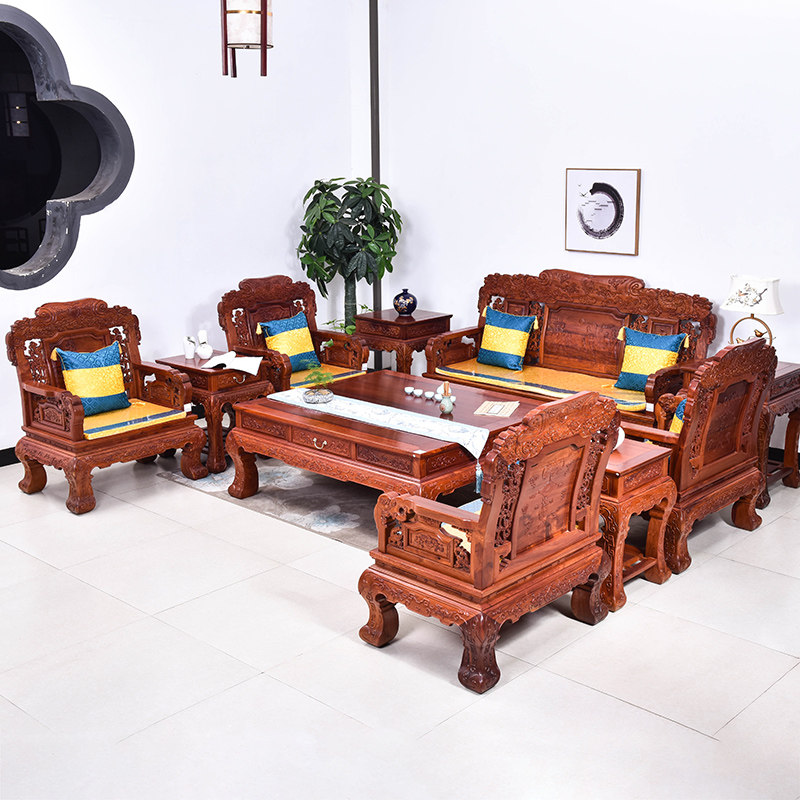 Sutin Red Wood Furniture Myanmar Flowers Pear Wood Sofa Chair Combined Big Fruits Purple Sandalwood New Classical Carved Flower Sofa