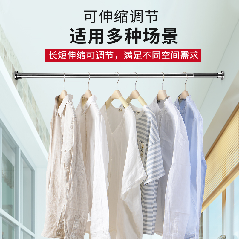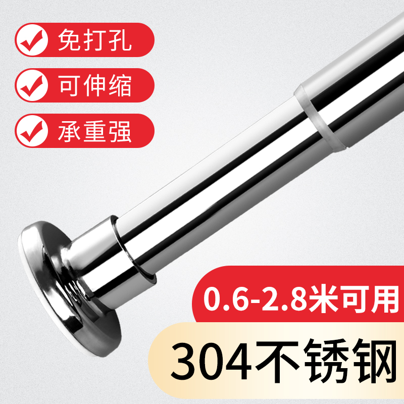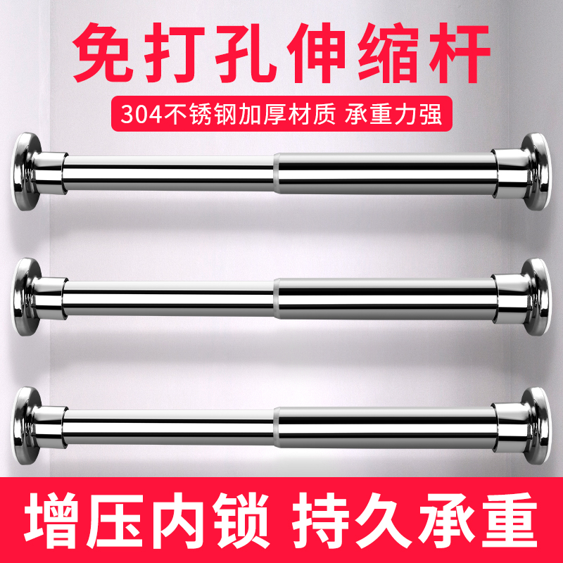 Non-punching bath curtain rod telescopic lever window curtain rod 304 stainless steel sun-clotheshorse extendible clotheshorse balcony clotheshorse