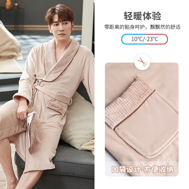 Sleeping Robes Men's Autumn Winter Thickened Garnter Warm Coral Suede Day Style Bathrobe Spring Autumn Long Version Island Suede Palate Morning Gown