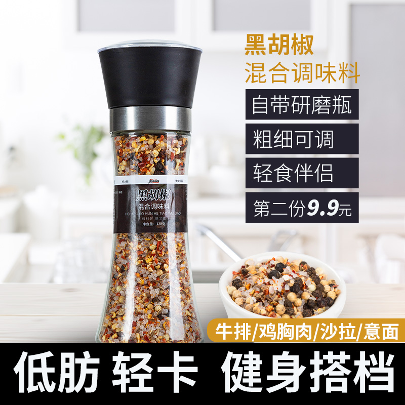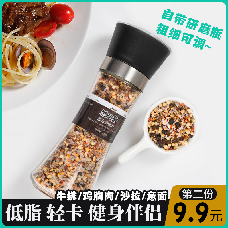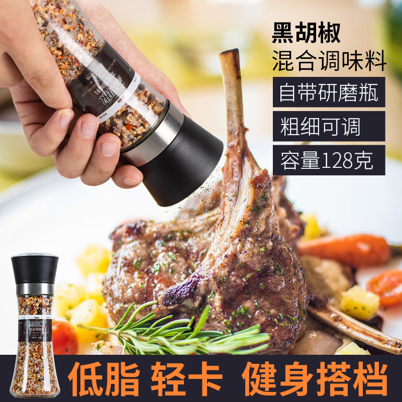 ㊙️Sea salt Black pepper grain with grinder Steak seasoning Low-fat card fitness meal chicken breast mixed seasoning