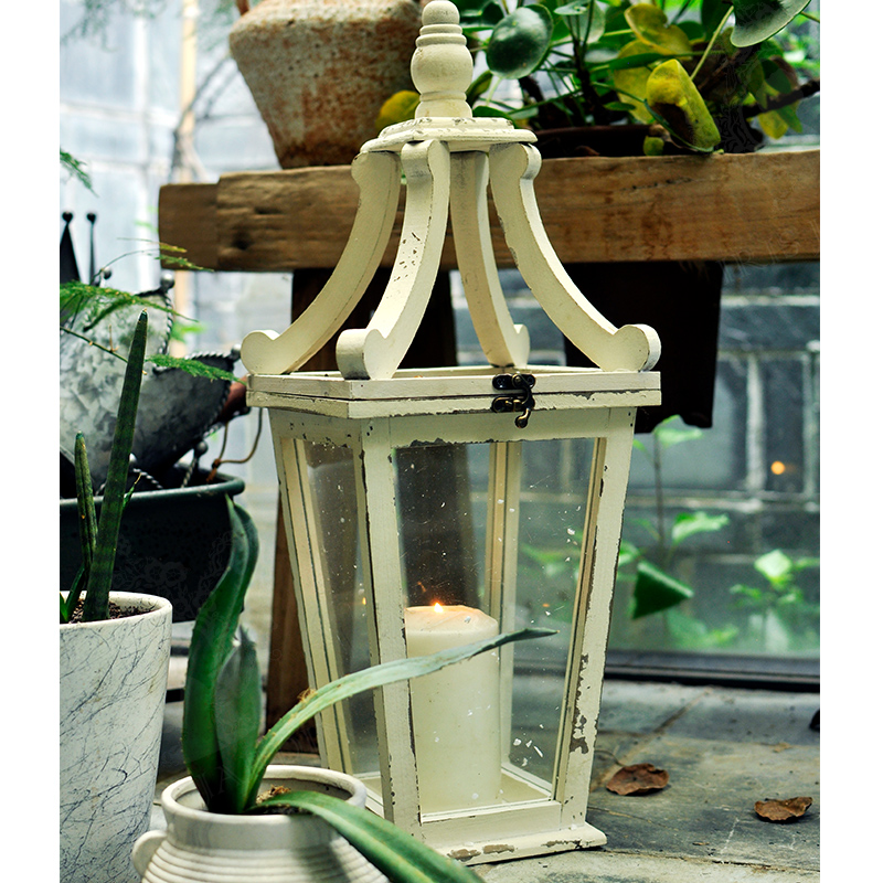 Countryside Retro Wind Light Decoration Solid Wood Candle Holder Glass Art Pendulum-style Nostalgic Lantern Garden Courtyard