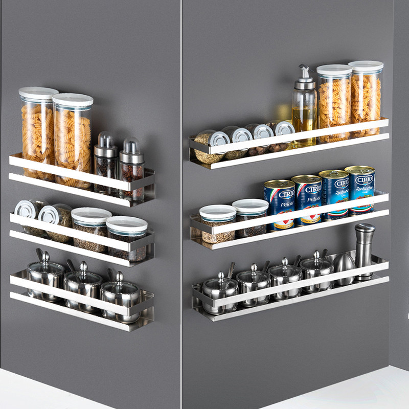 Kitchen storage shelf 304 stainless steel seamless nail-free wall-mounted multi-function countertop seasoning rack saves space
