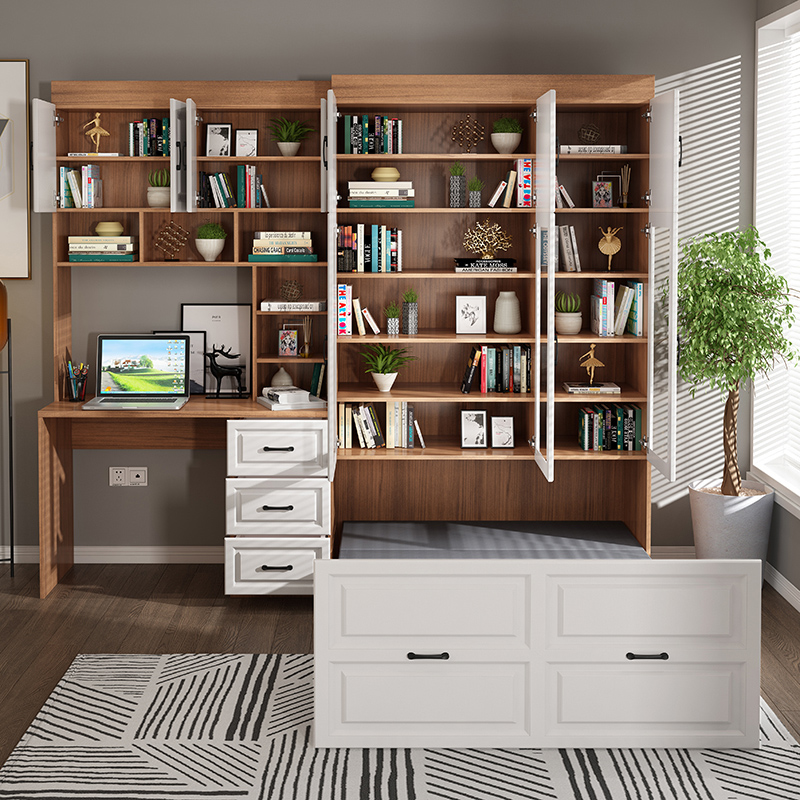 Versatile folding invisible noon off-set bed desk bookshelf combined corner bookcase integrated home office computer table desk