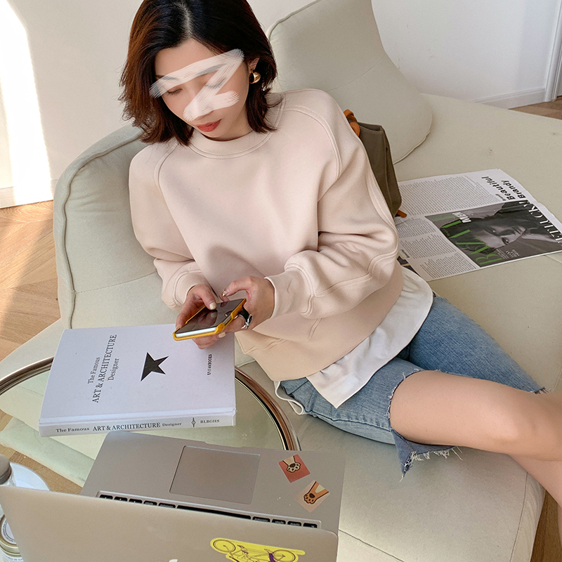 Spring and Autumn 2022 new simple fashionable blue cocoon type short air layer sweatshirt women's fashionable space cotton short coat