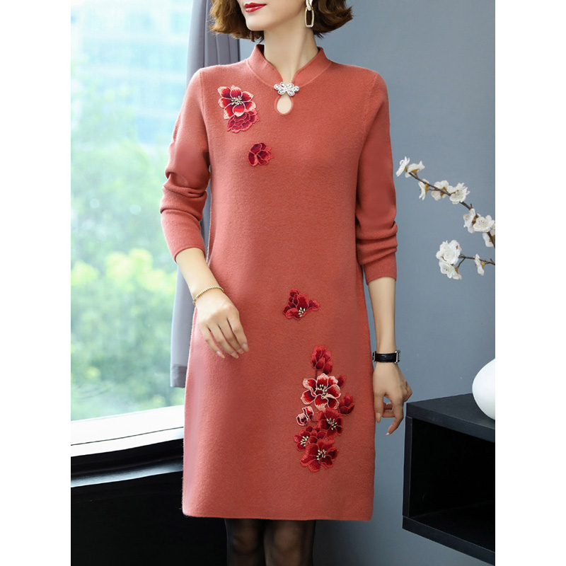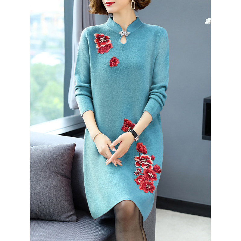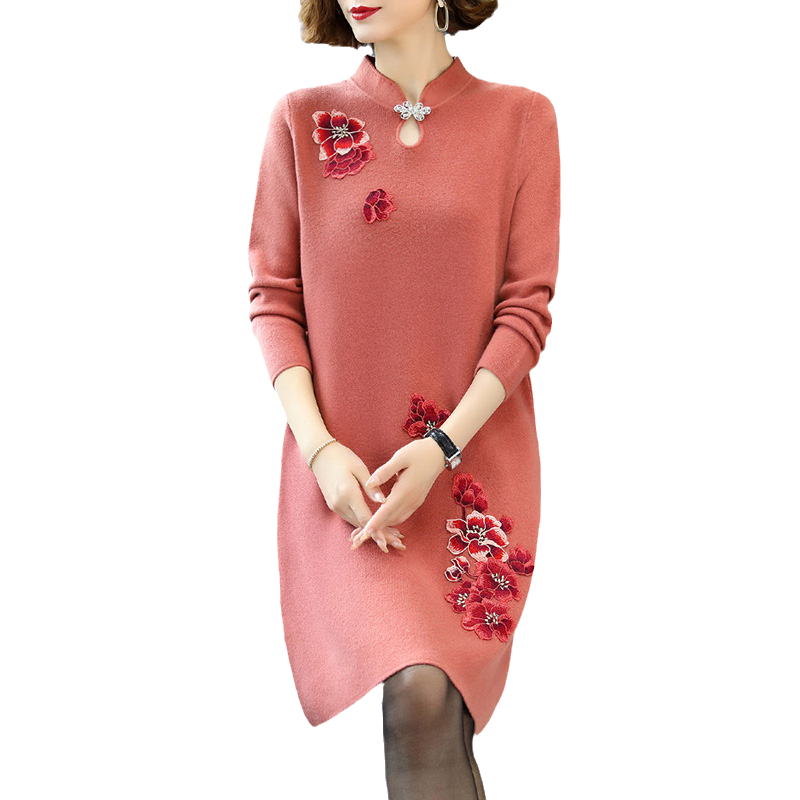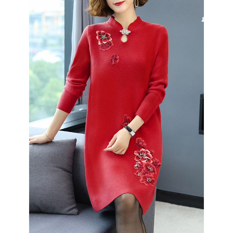 Young mother's winter dress, western style, middle-aged and elderly women's autumn and winter ethnic style middle-aged women's loose sweater thickened