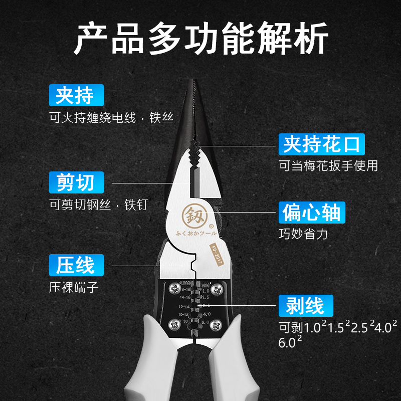 Fukuoka 6 inch 8 inch silhouette clamp electrician special 6 in one multi - functional clamp with small tip silp clamp