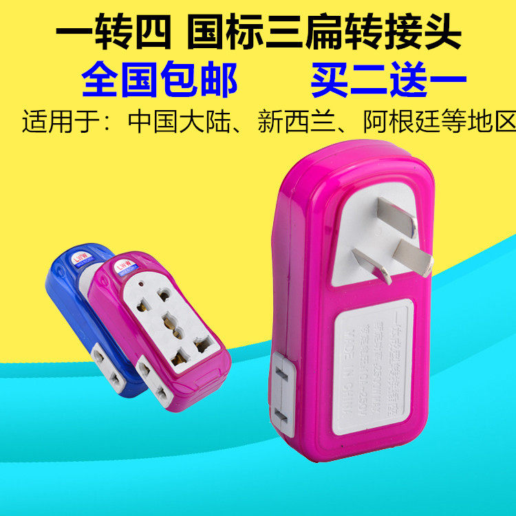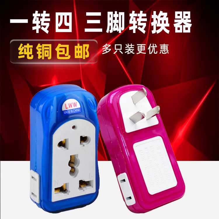 Two-foot-to-three-hole plug socket converter Three-pin home three-plug two-phase hole two eyes 2-turn 3