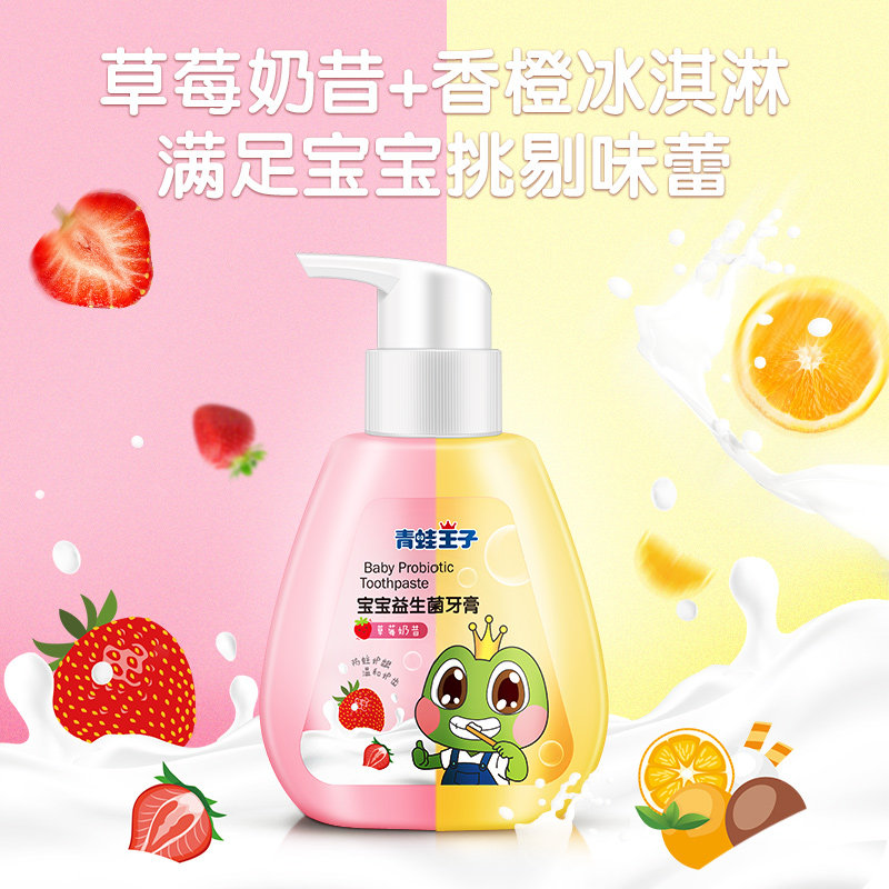 Frog Prince Children's Toothpaste 3-12 Year Old Baby Low Fluoride Probiotics Kids Anti-Moth Protection Gum Compression