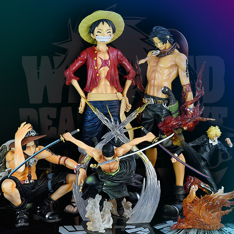 Fire Fist Luffy (about 18cm in height) Smiley Luffy (about 28cm in height) Face-changing Ghost Slashing Zoro (about 17cm in height) Zoro in standing position (about 23cm in height) Minced Meat Sanji (about 17cm in height)