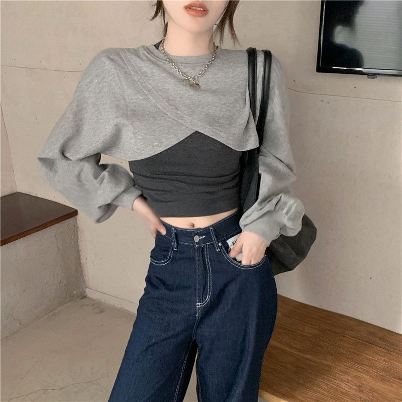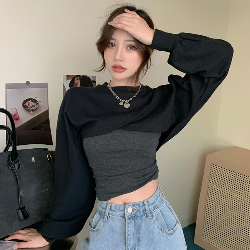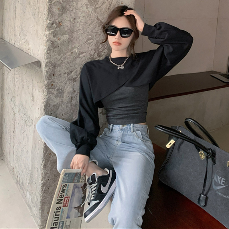 Sweet Hot Girl Fashion Suit Woman Spring Fall 2022 New Internet Red Fried Street Sweatshirt Fold wearing two-piece blouse