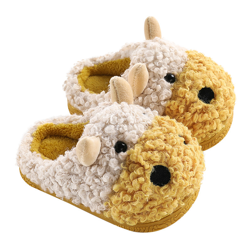 Pu Xiqiwu children's cotton slippers female cartoon cute plush warm home indoor non-slip household baby slippers