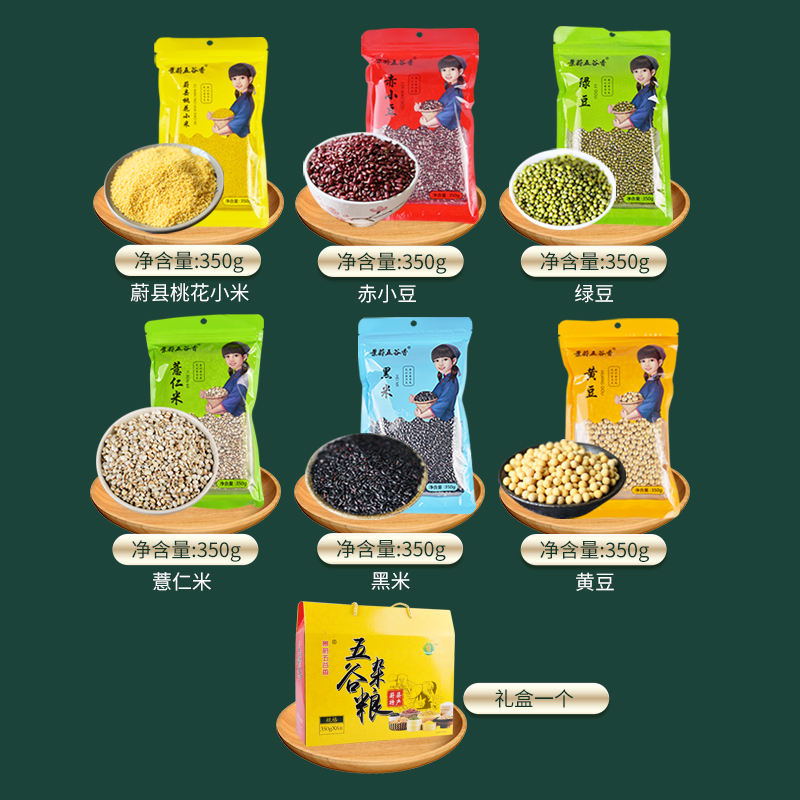 Jingwei Wugu Xiangwei County Peach Blossom Yellow Millet Black Rice Green Rice Green Beans Red Kidney Beans Red Kidney Bean Five Grain And Grain Gift Boxes