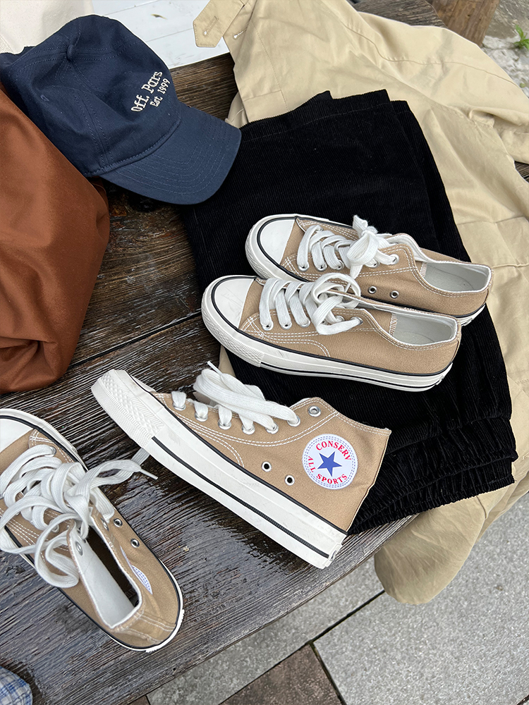 Japanese version of Korean plus velvet gentle milk tea khaki retro high and low canvas shoes 1970s board shoes men and women couples