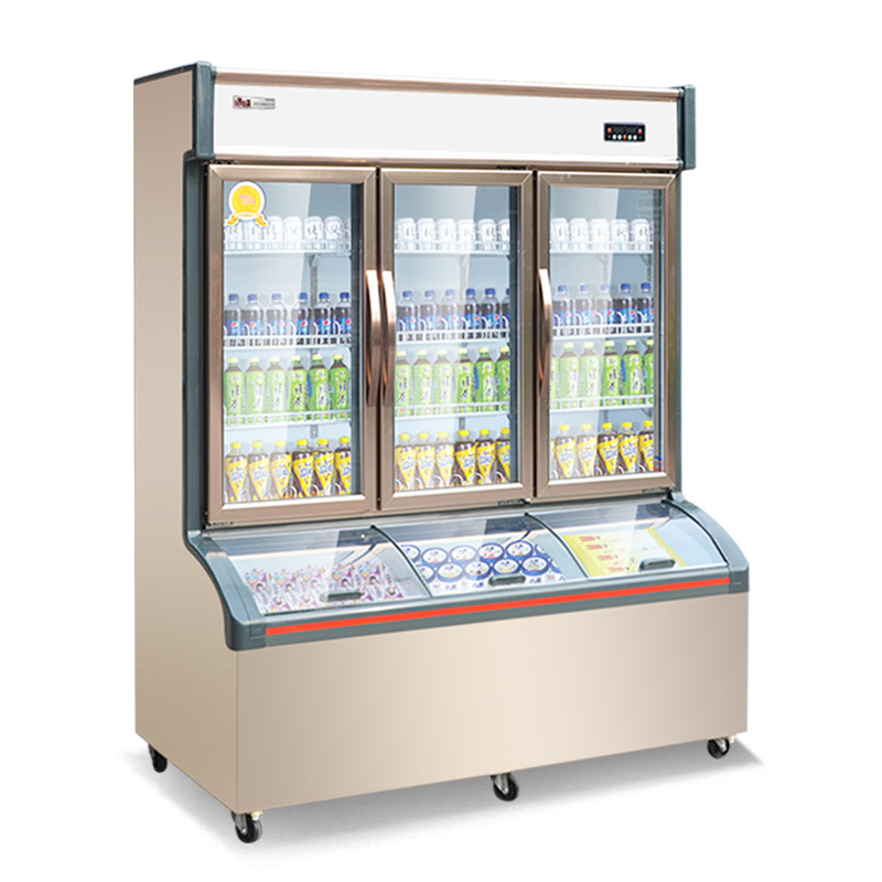 Ice cream ice cream beverage upper refrigerated and frozen fresh-keeping supermarket convenience cabinet vertical commercial double temperature display freezer