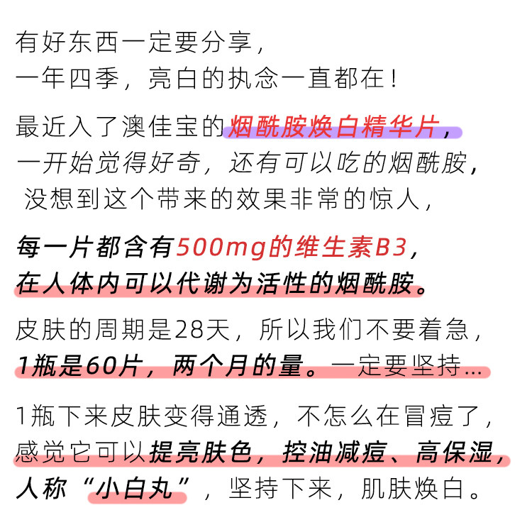 Australian Blackmores nicotinamide Huanbai essence Vitamin B3 Australian Jiabao bm oral brightening white pill 60 grains