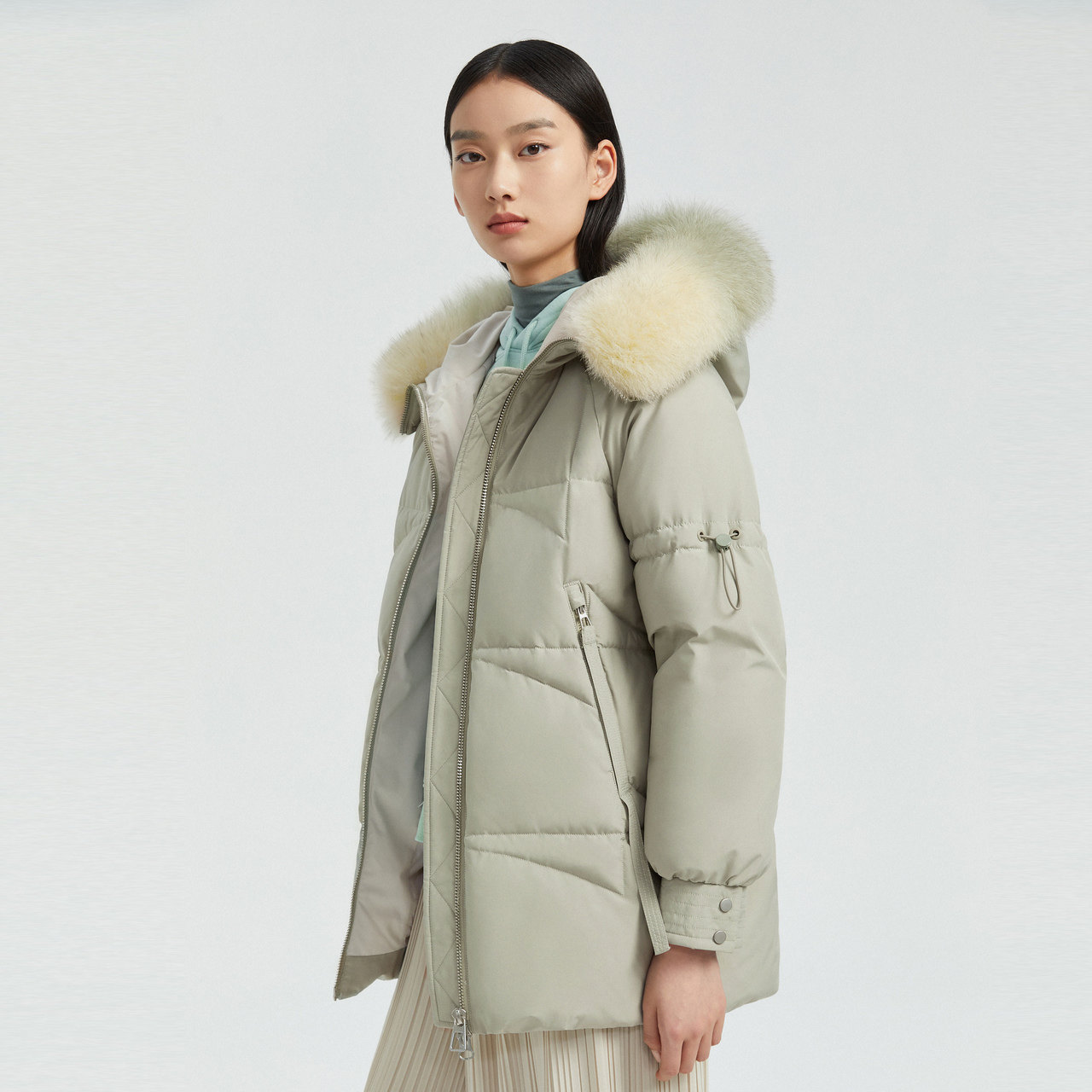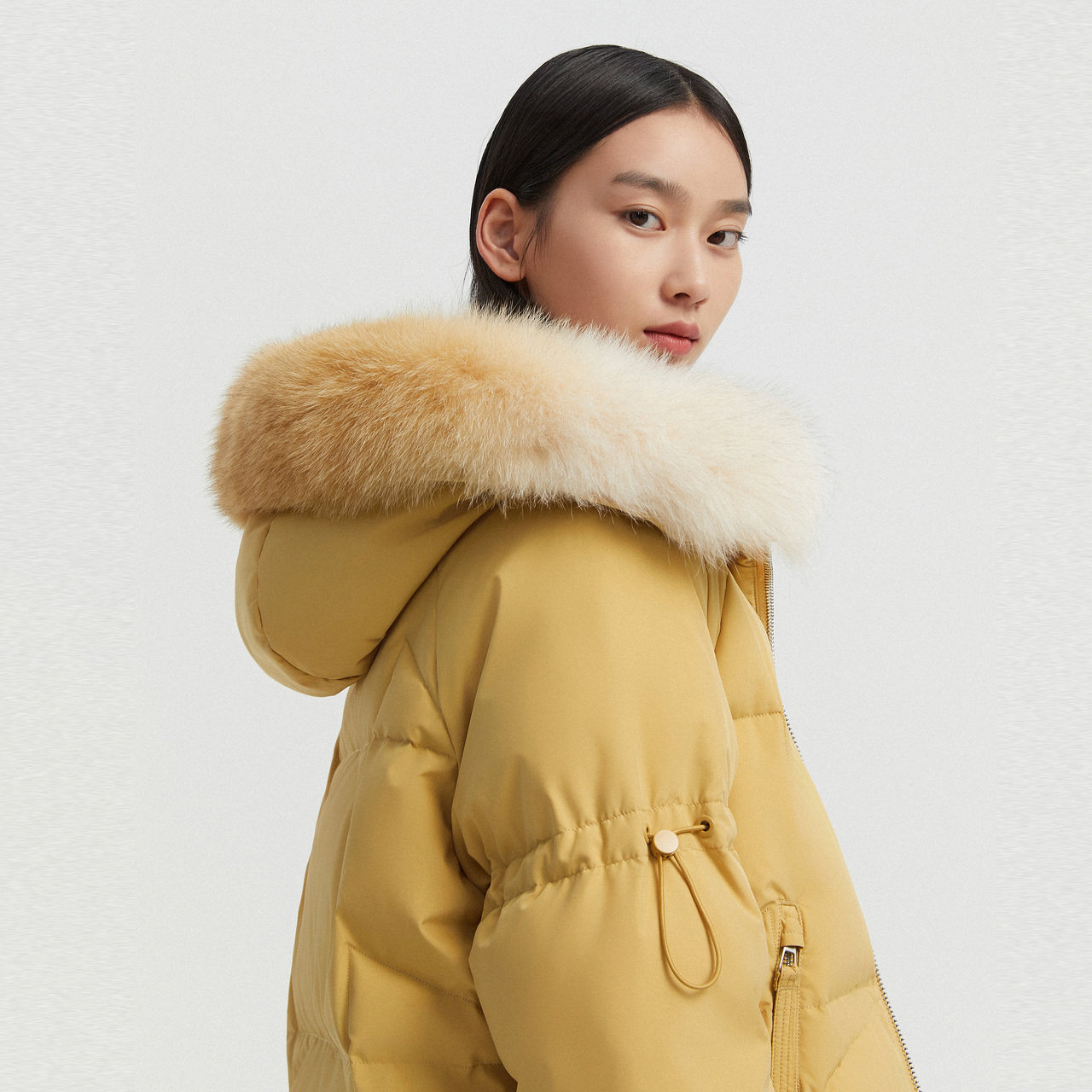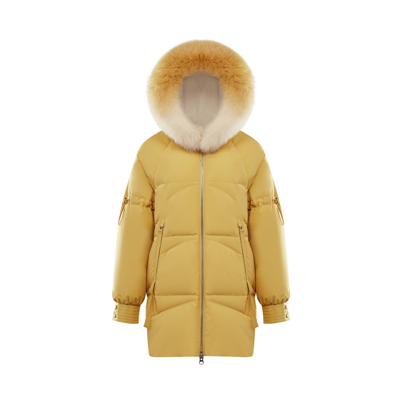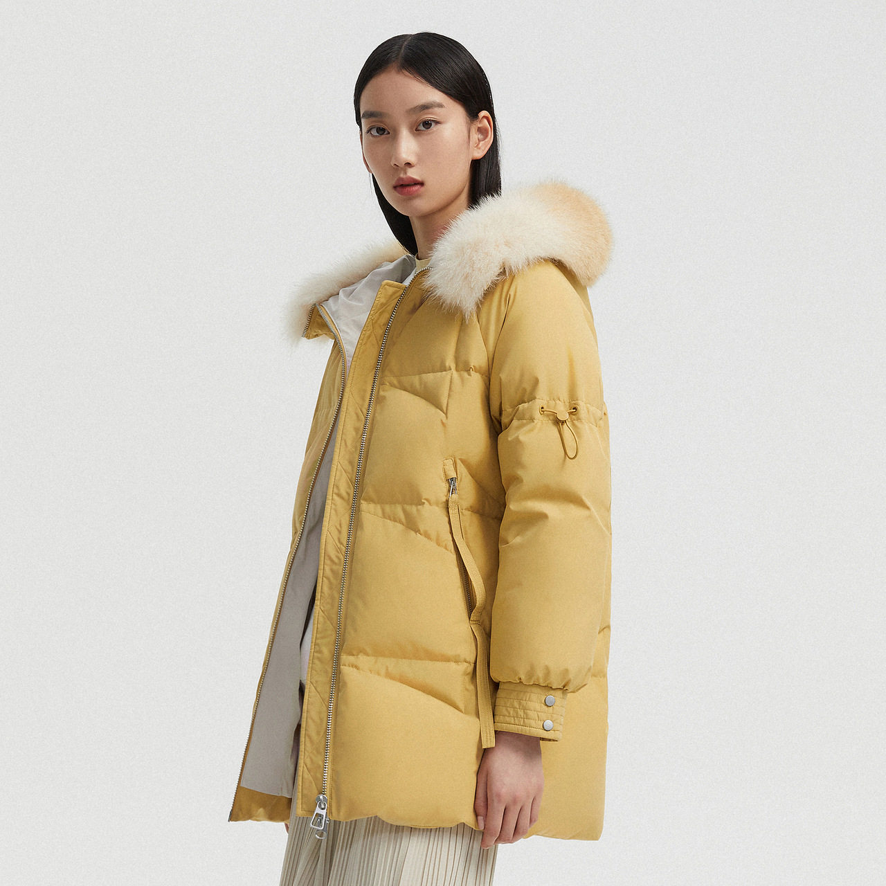 Bourgendon Korean version of the down jacket woman's medium long version thickened new yellow fox fur collar little sub B00145228