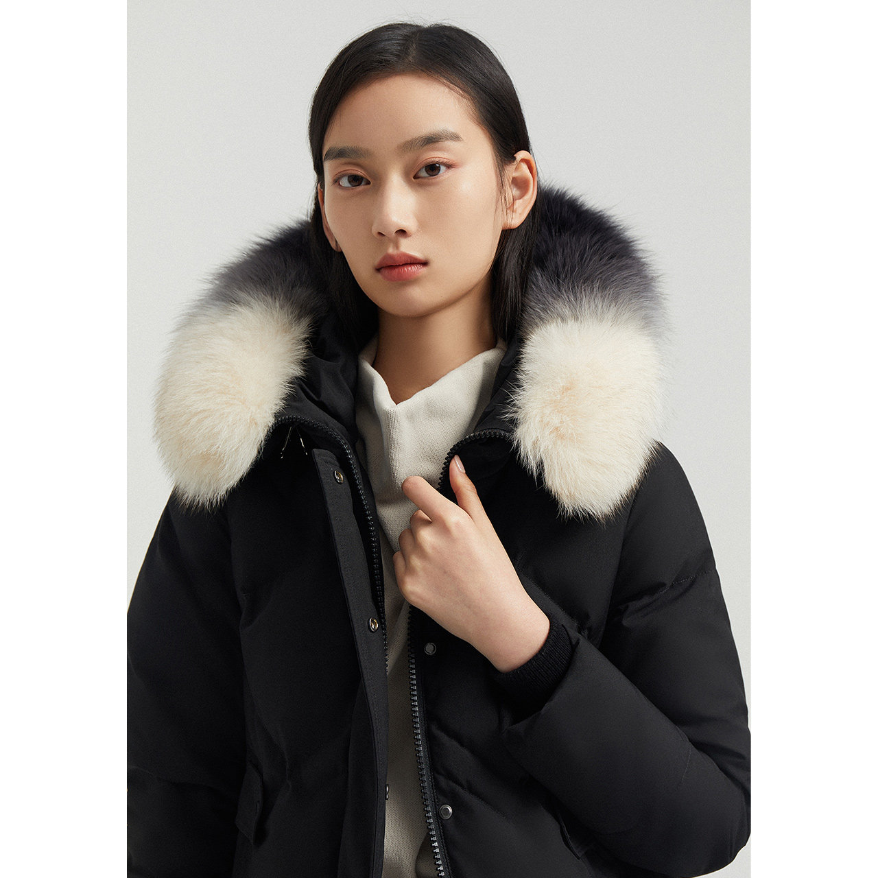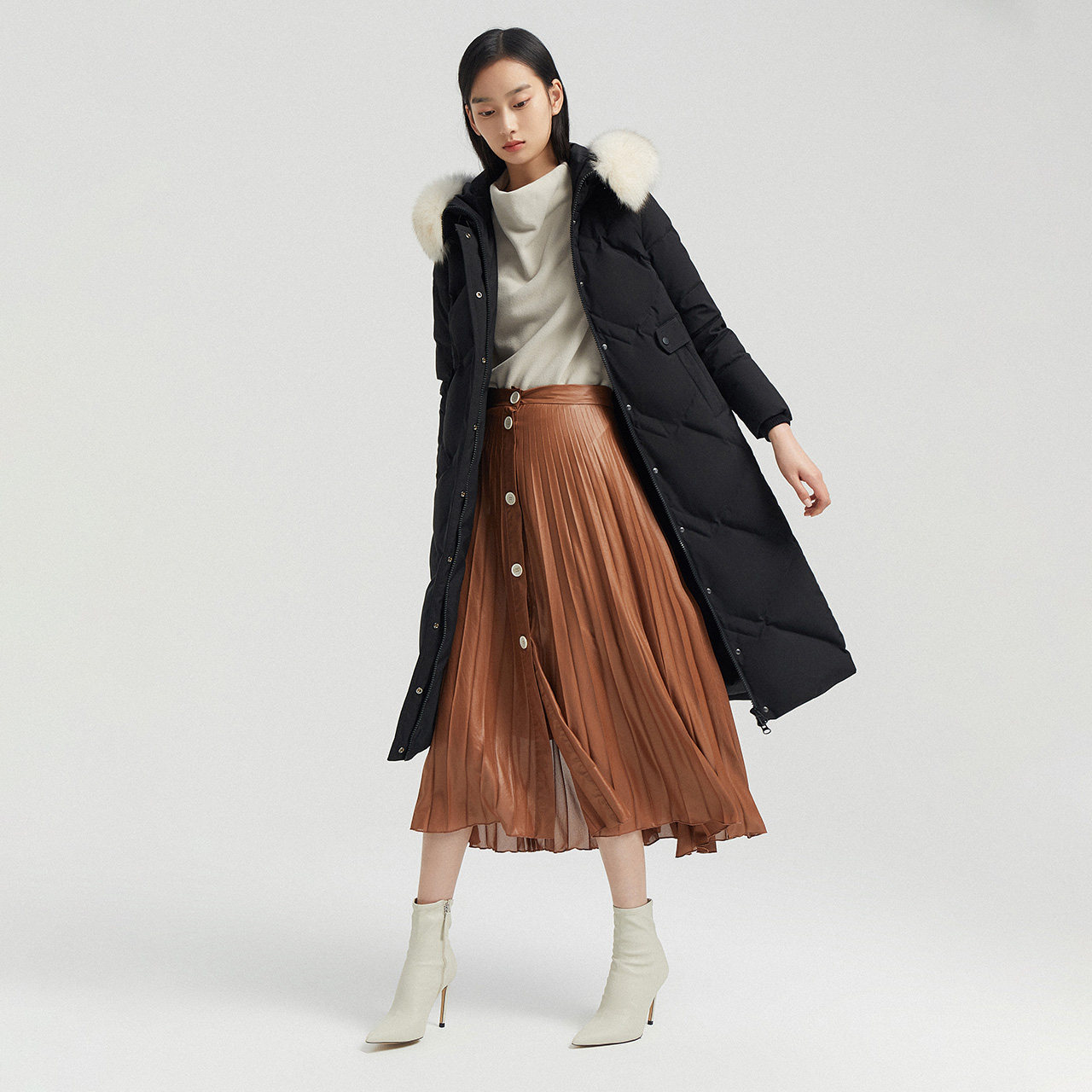 Bosideng down jacket women's long version 2021 new long over the knee fox big fur collar shows thin tide B00145176