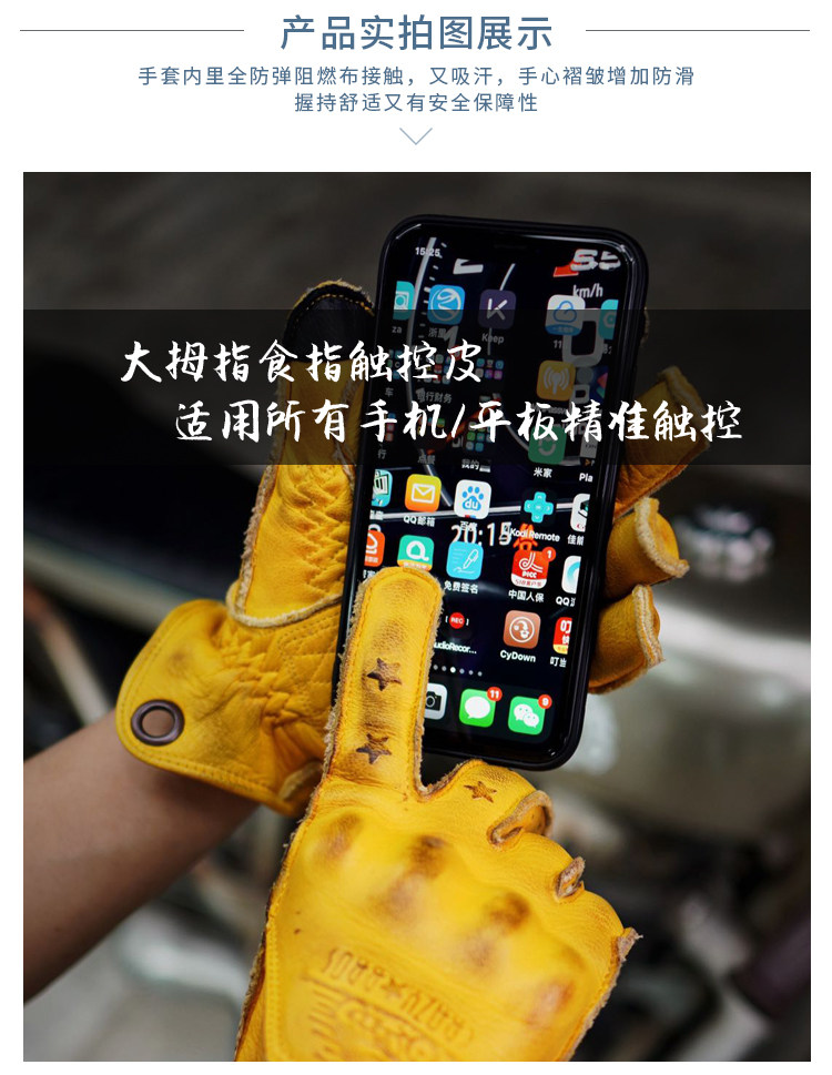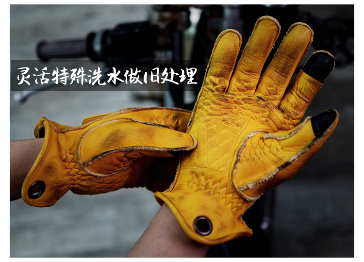 Spot retro locomotive deer skin yellow for old gloves touch screen for men and women autumn and winter VESPA Harekscrew anti-fall