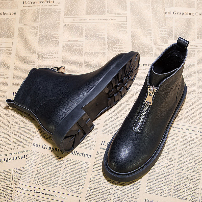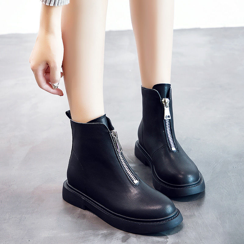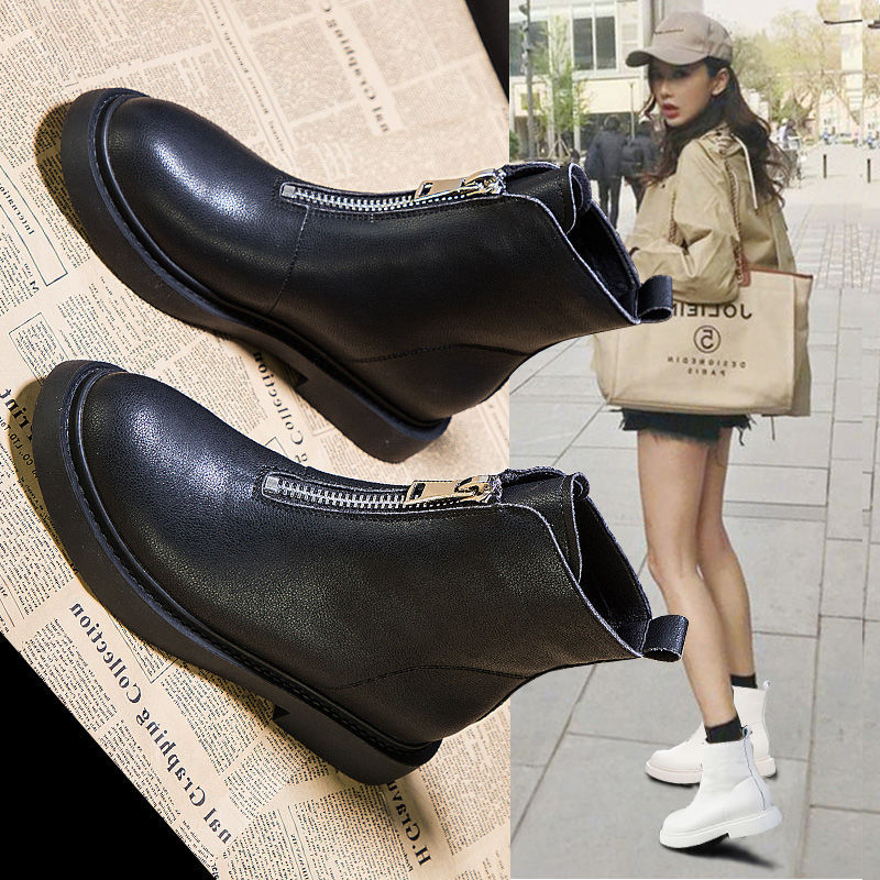 2021 autumn winter new Martin boots female Inn wind 100 lap thick bottom handsome gas front pull chain short boot female plus suede single boot