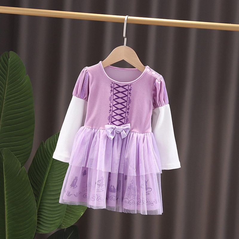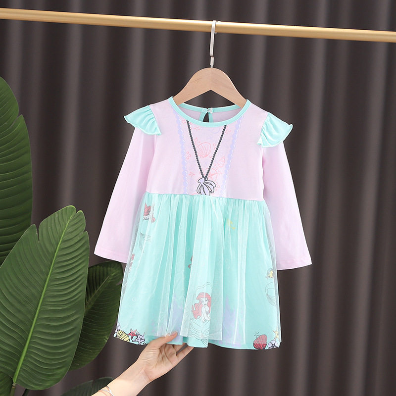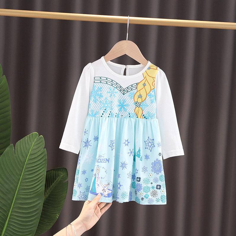 Foreign Trade Small And Medium Girl Autumn Winter Cotton Long Sleeve Mermaid White Snow Birthday Long Hair Sufia Princess Silk Suede Foreign Dress