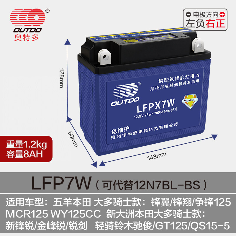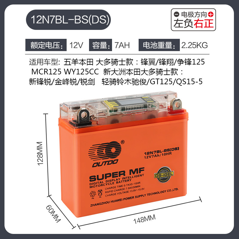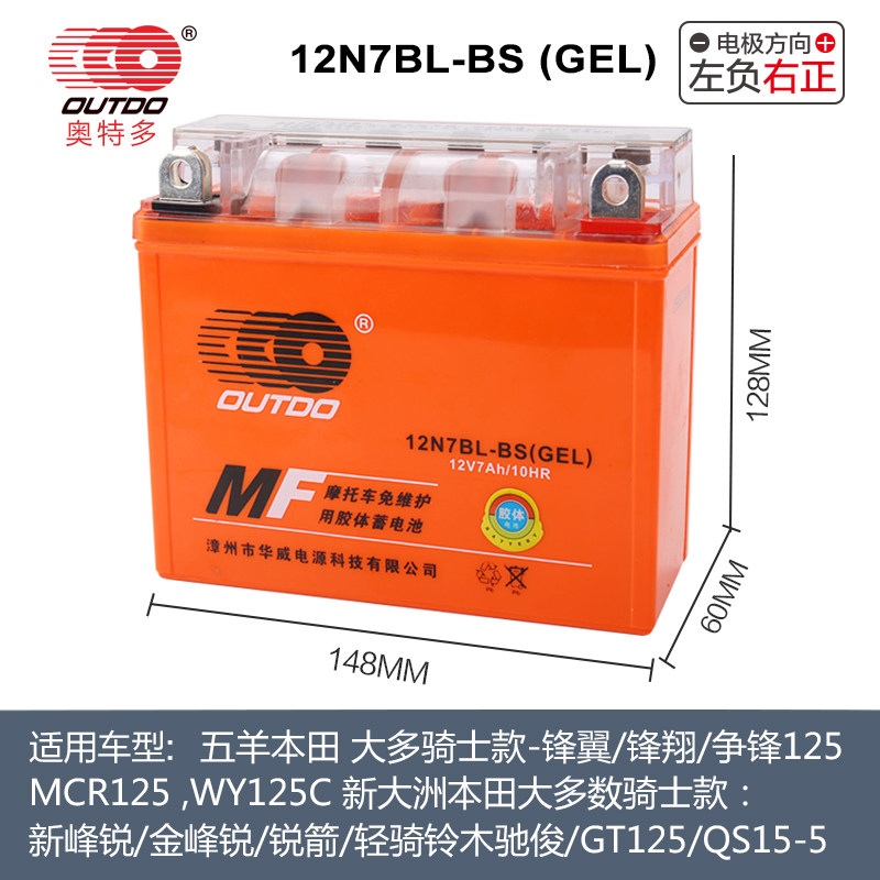 Aotedo battery 12V7ah locomotive battery thin section 12N7B five sheep Honda wing 125 general purpose