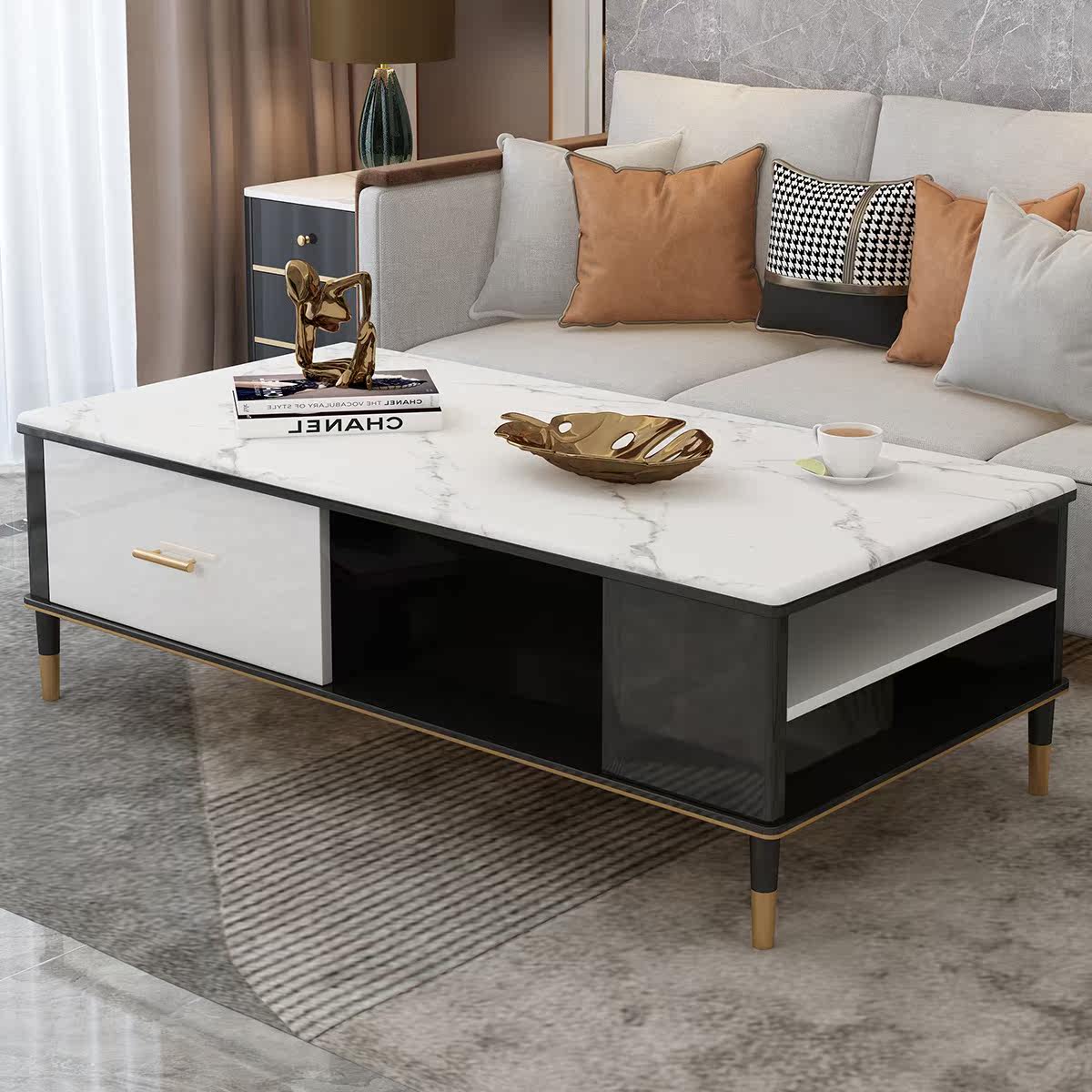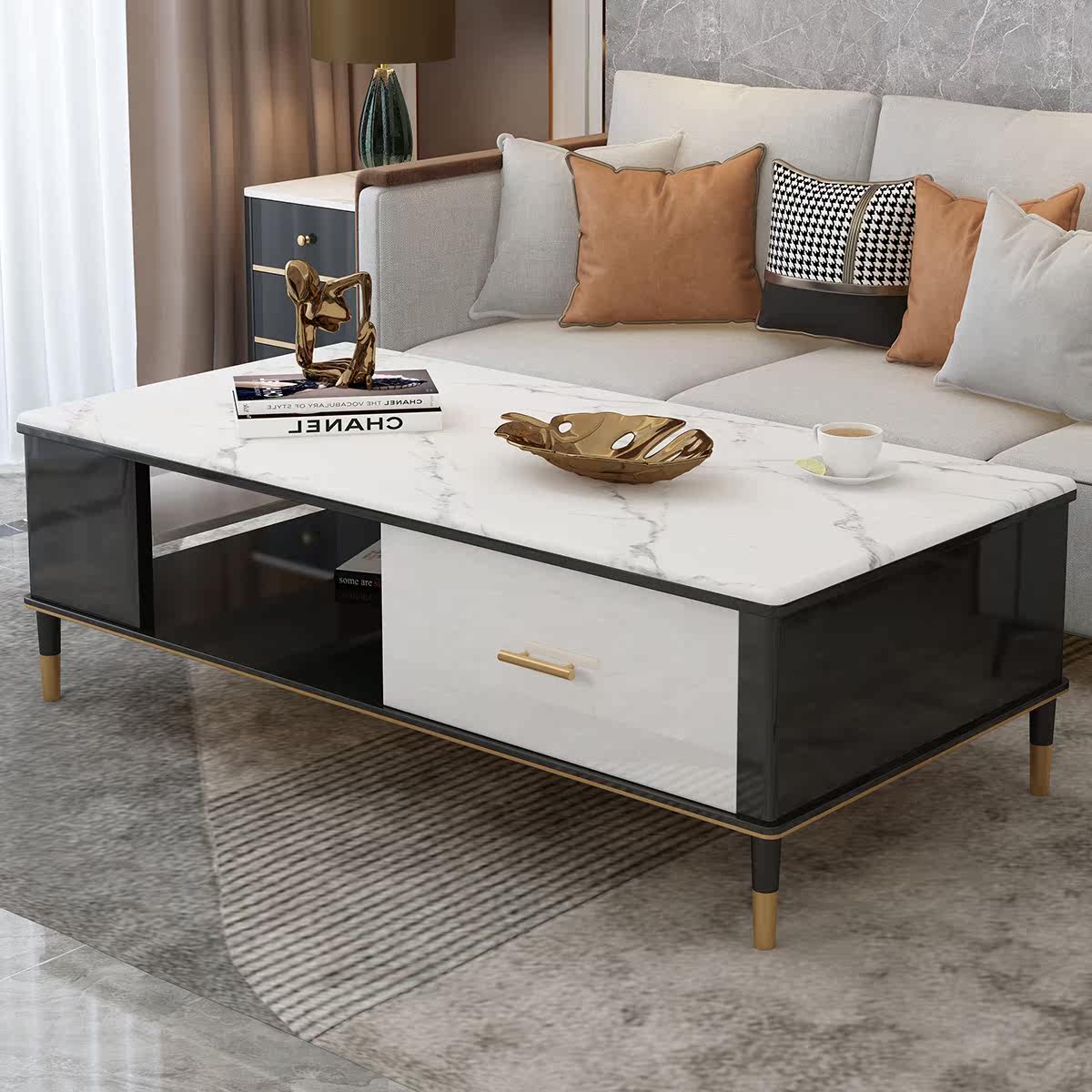 Nordic style light luxury rock plate coffee table table Living room household small household net Red creative tea table Tea table Simple and modern