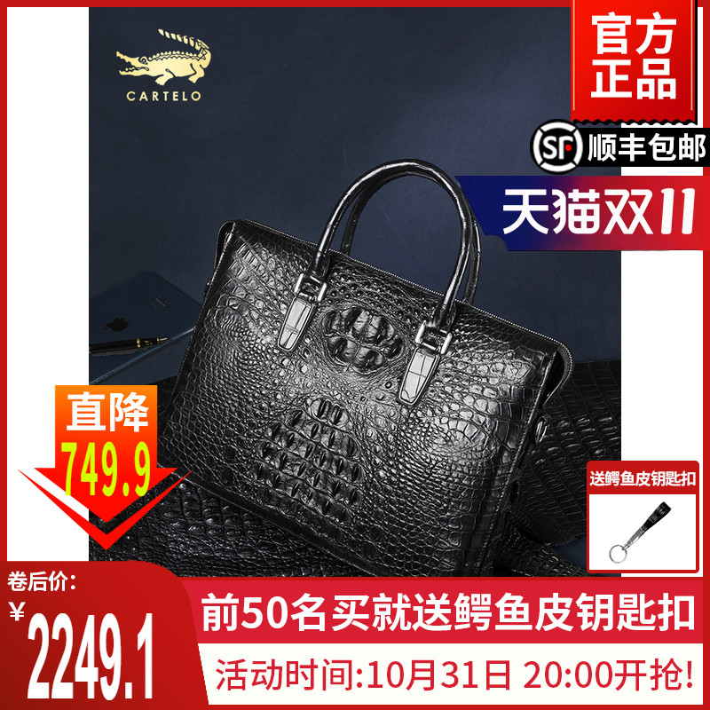 Cardiole crocodile leather men's bag leather horizontal briefcase men's large-capacity one-shoulder messenger handbag