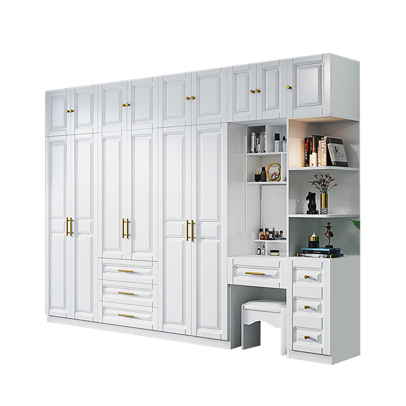Wardrobe Modern minimalist Economy Type with makeup Desk Bedroom Cabinet Assembled Wooded Overall Light Lavish Six Doors Big Closet