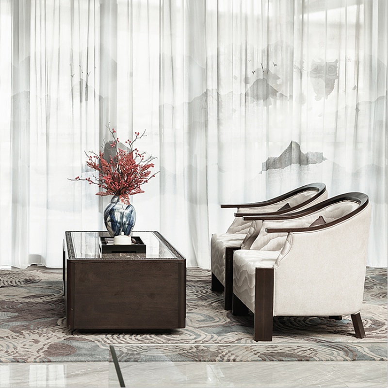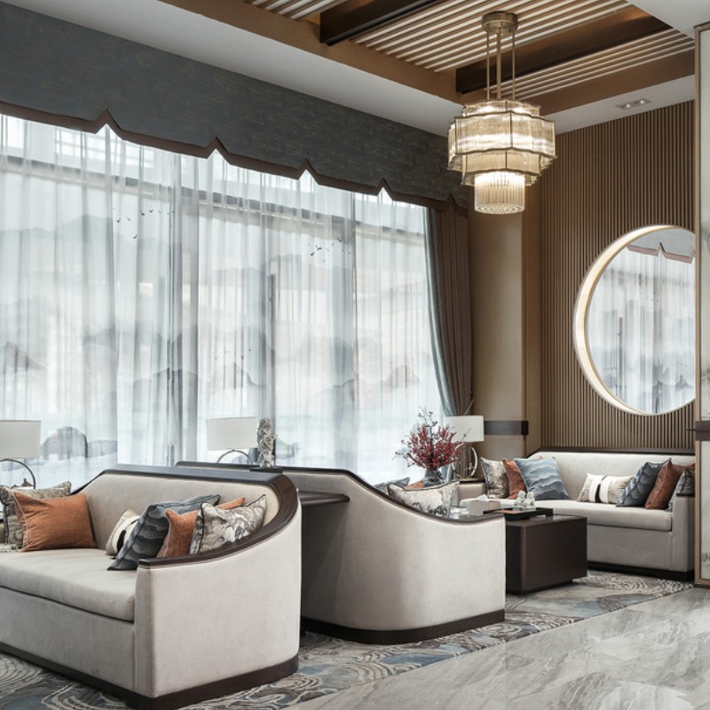 SAMPLE HOUSE DISPLAY CENTER RECEPTION SOFA COMPOSITION NEW CHINESE HOTEL NEGOTIATION MEETING AREA SOLID WOOD CASSETTE-LIKE BOARD ROOM CUSTOM