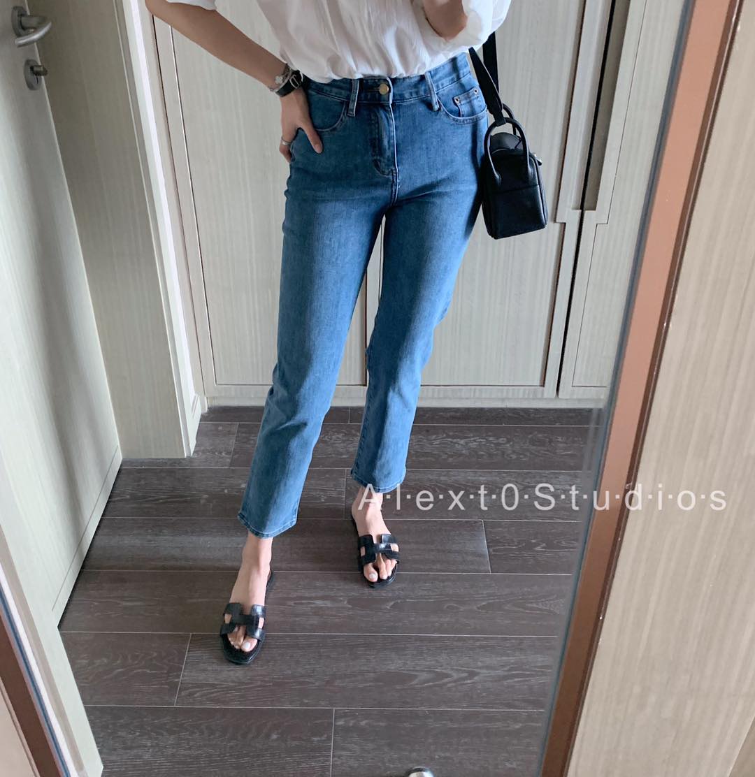 Spot high-end series second bomb patented four-way stretch fabric Han Xiao straight eight or nine points comfortable mid-rise jeans