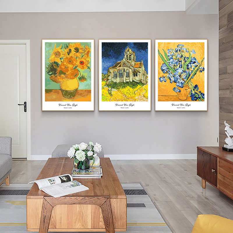 DIY digital oil painting Van Gogh starry sky oil painting abstract world famous painting living room bedroom landscape decoration painting three spells