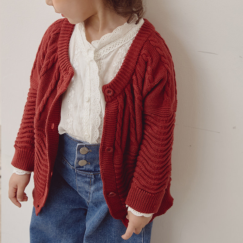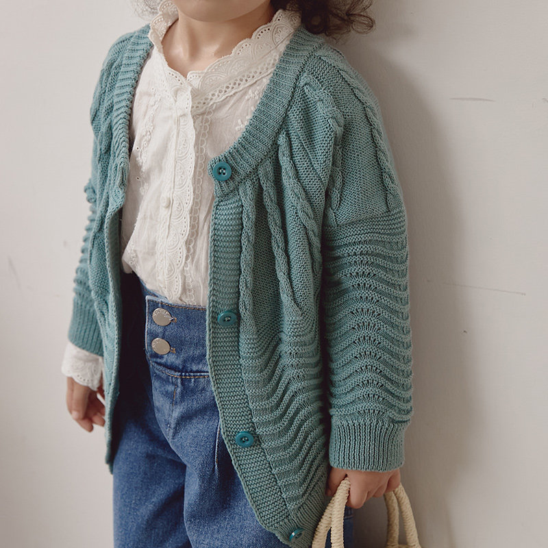 Girl jacket sweater children's clothing knitted blouse autumn winter cardiovert long sleeve round collar Korean version fashion 100 hitch pure cotton