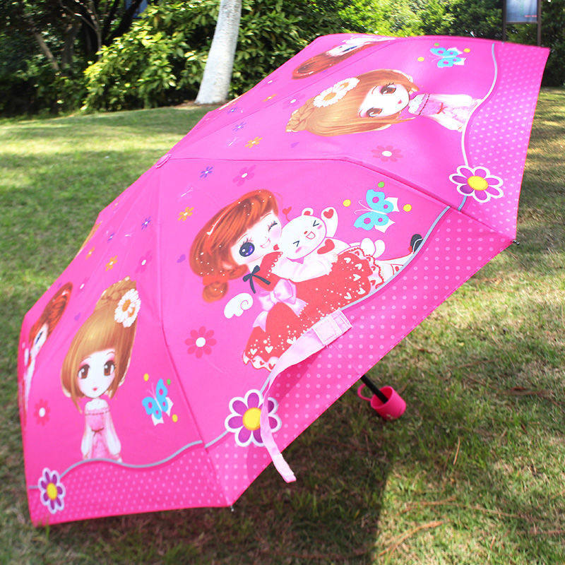 Children's folding umbrella automatic cartoon children's umbrella Primary School students three folding umbrellas male and female children sunshade umbrella