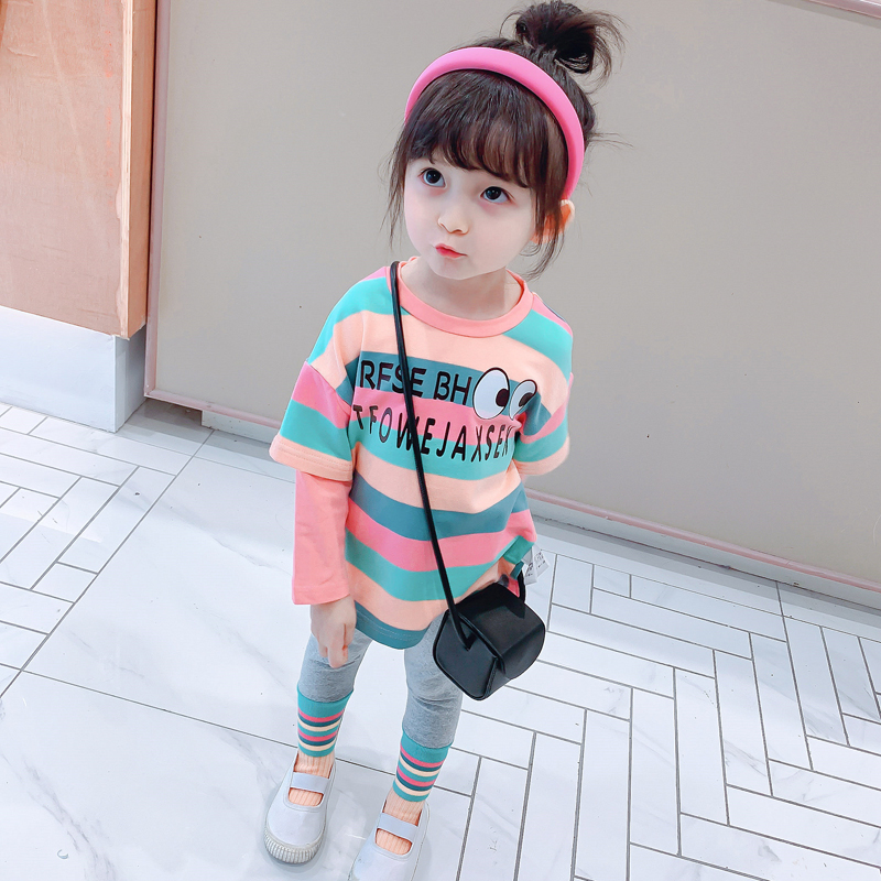 Girls striped suit Female baby color two-piece set spring and autumn children's Korean version of Foreign school clothes 2021 new