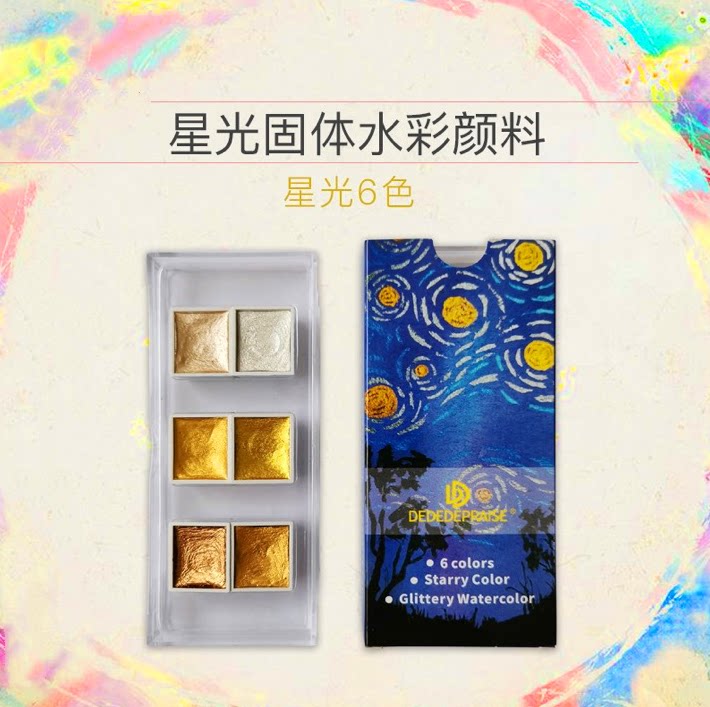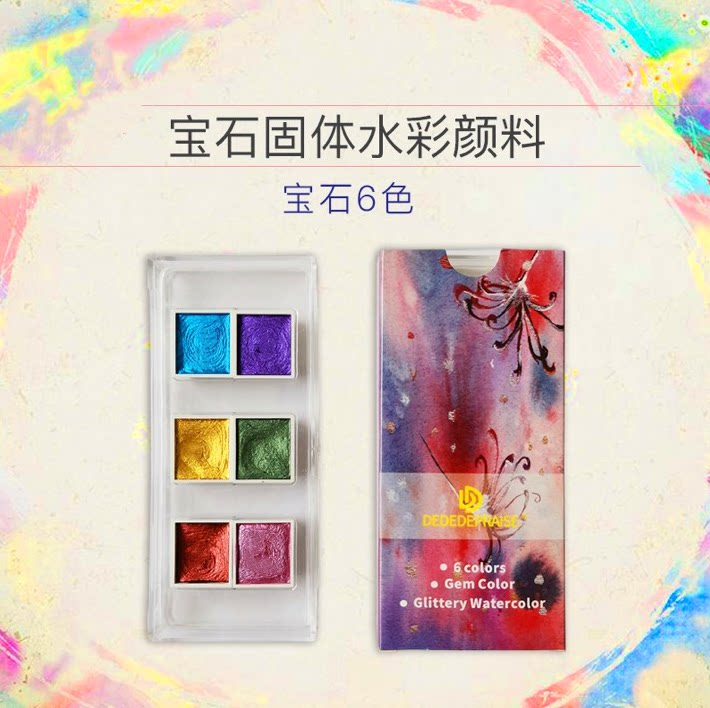 Pearlescent pigment solid watercolor gemstone starlight color 6 color hand painted color paint art Berdiga