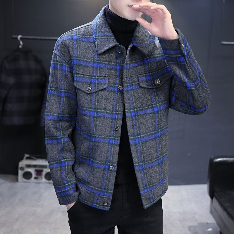 Double-sided woolen coat men's autumn and winter short Korean fashion loose jacket men's wool woolen coat coat tide