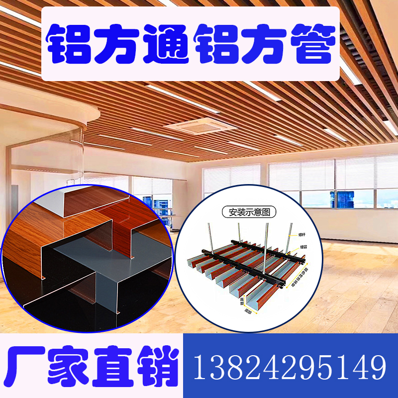 Wood grain aluminum square tube ceiling partition: