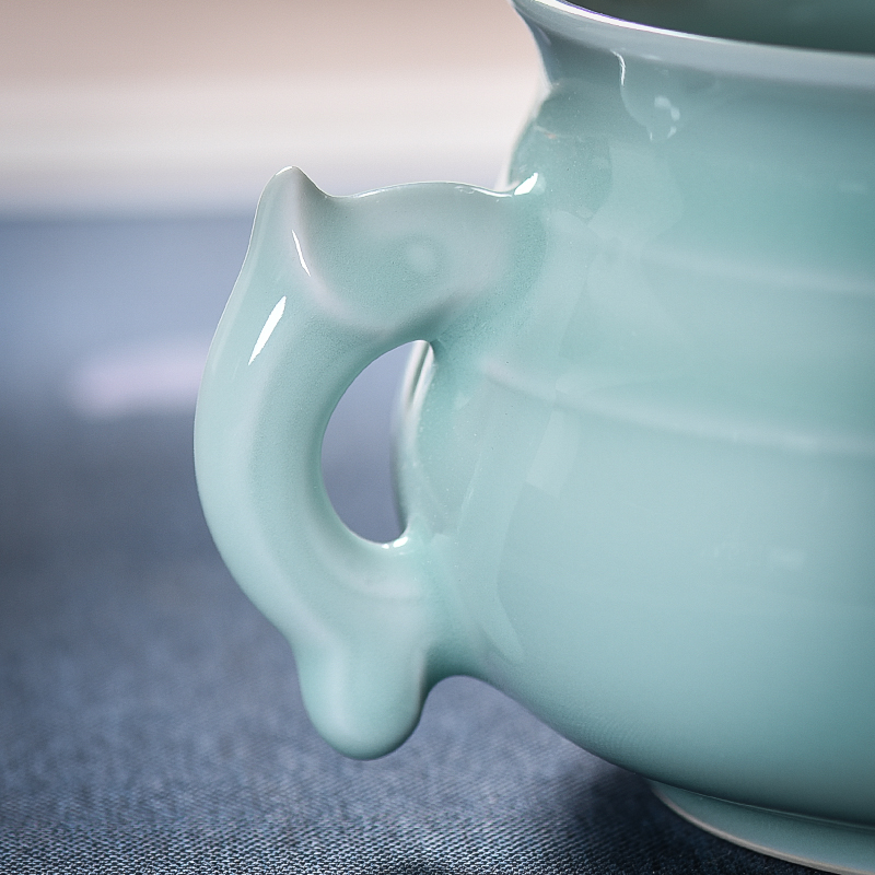 Dragon Springs Pure handmade thick glazed incense stove Home Interior Ceramics Burning Incense dedicated to upscale big number antique double ear stove pendulum