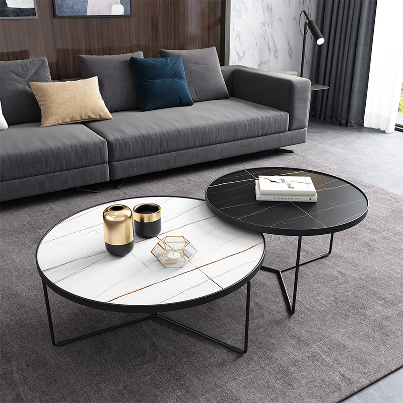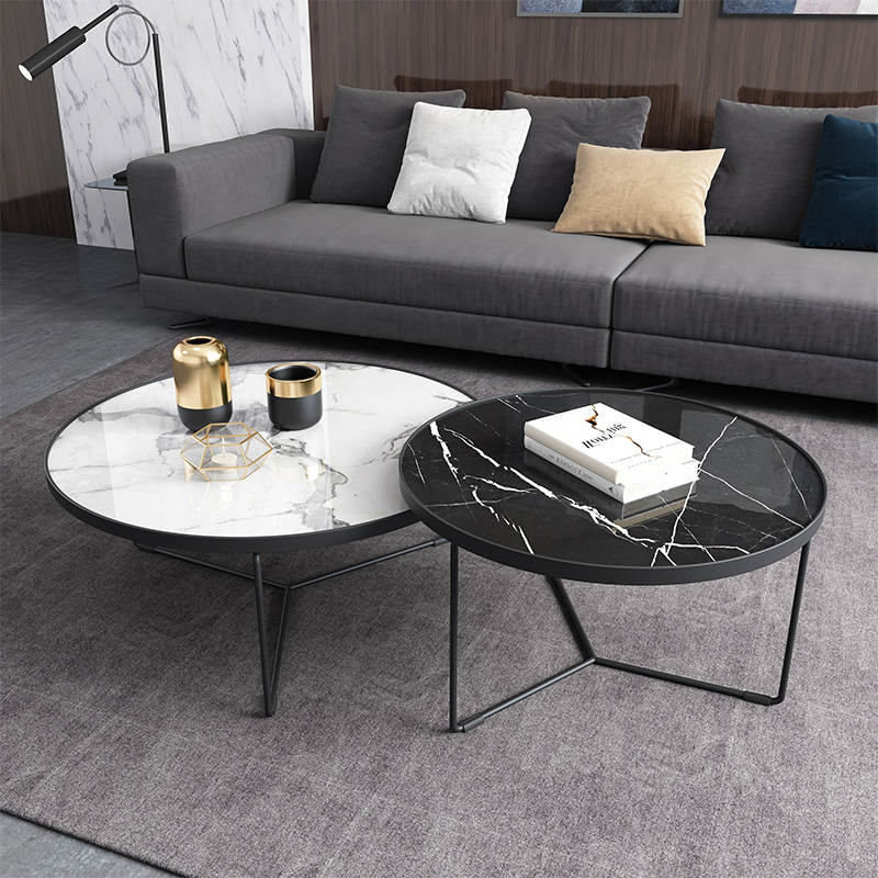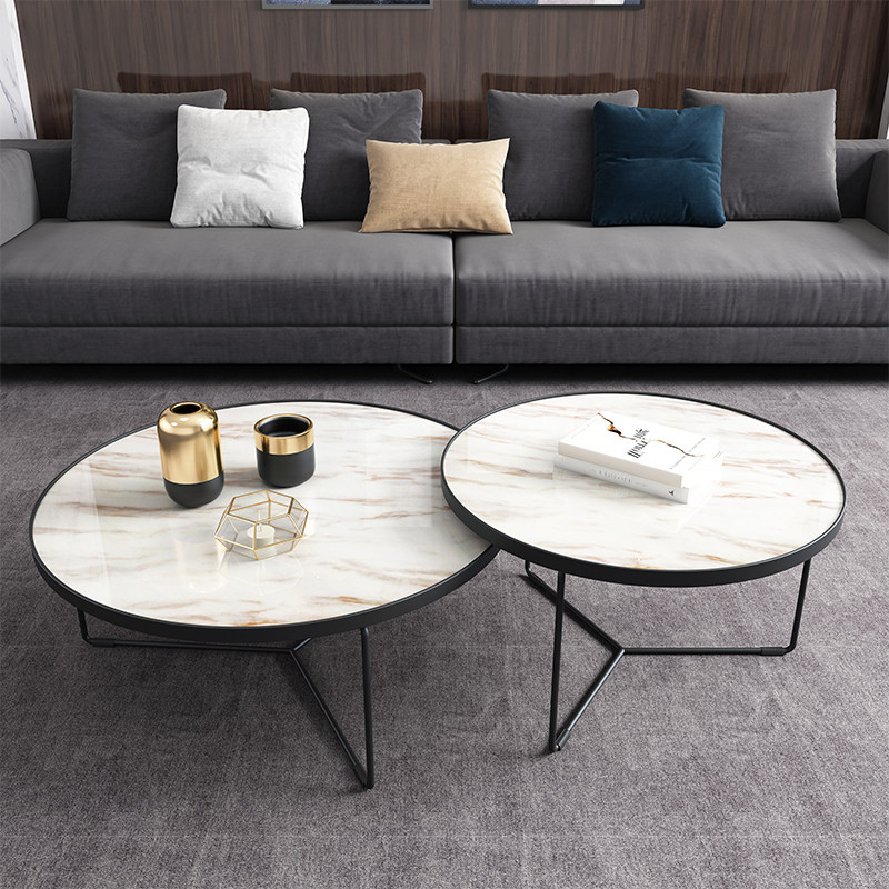Marble size round coffee table floor cabinet combination minimalist Nordic modern slate glass light luxury Italian economy